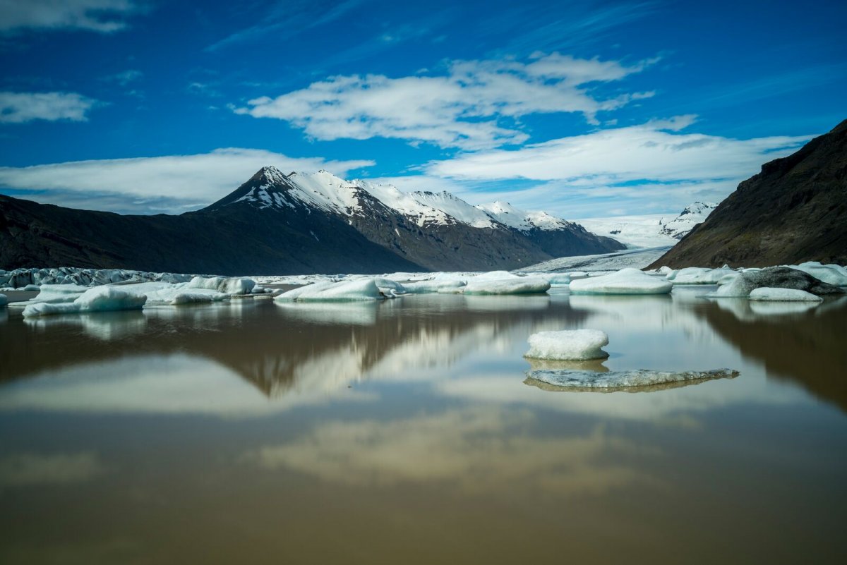 Jökulsárlón is a glacial lagoon which still blue waters are a sight not to be missed, as it is dotted with the icebergs from the edge of Breiðamerkurjökull. The lagoon flows through a narrow gateway into the Atlantic Ocean, leaving the spectacular sight of the large chunks of ice on the black sandy beach.