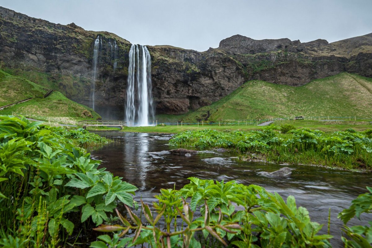 A unique waterfall in the river Seljalandsá, about 30 km west from Skógar. It is 60 meters high with a footpath behind it at the bottom of the cliff, but with a thin cascade. It is the only known waterfall of its kind, where it is possible to walk behind it. The waterfall is very picturesque and therefore its photo can be found in many books and calendars.